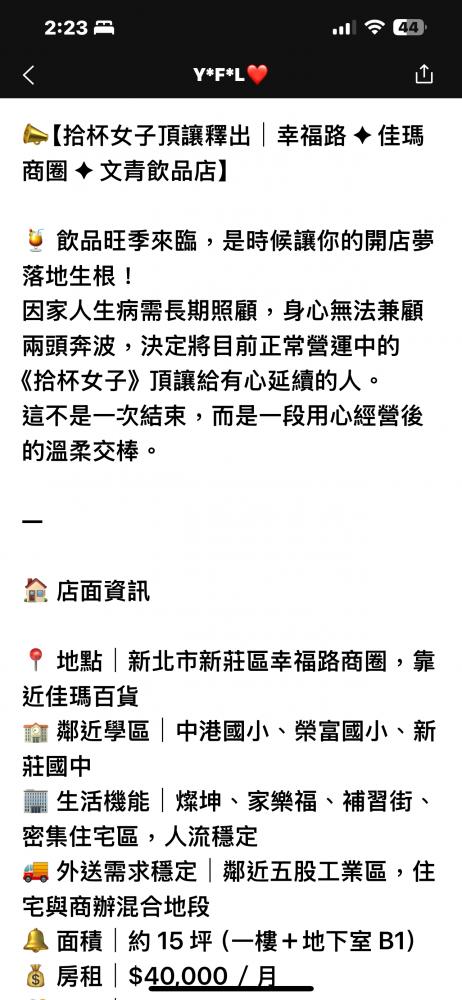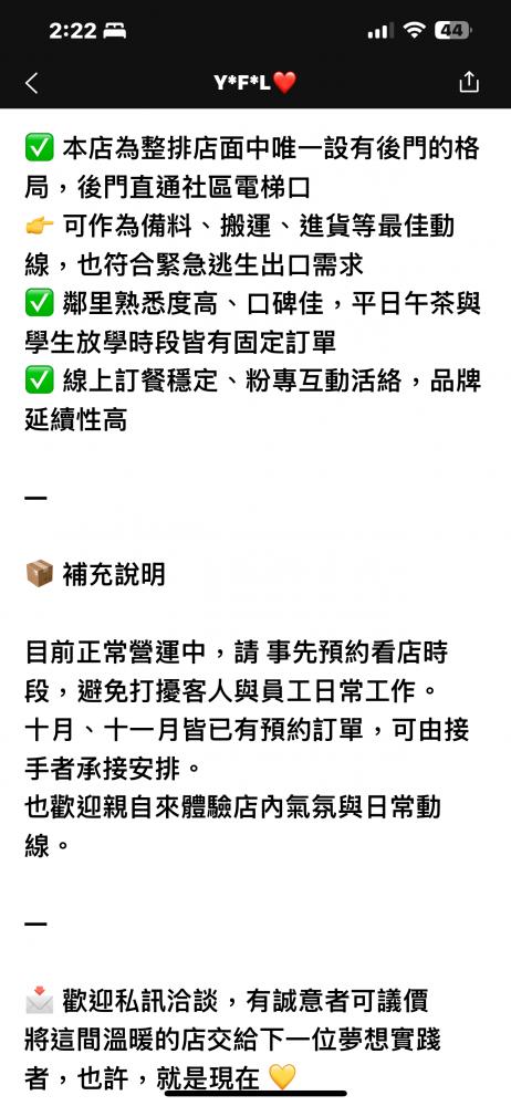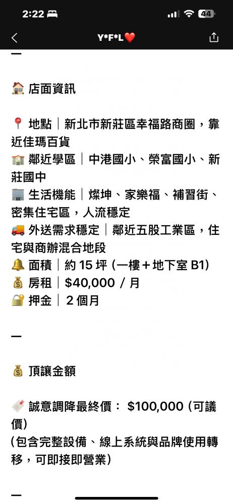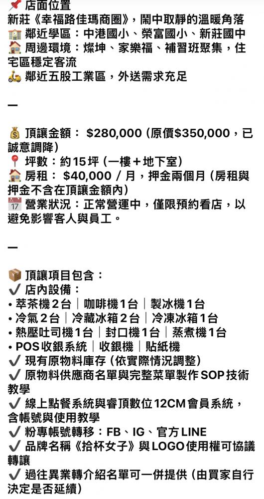 出讓原因: 頂讓金:$100,000(已調降,誠可議價)