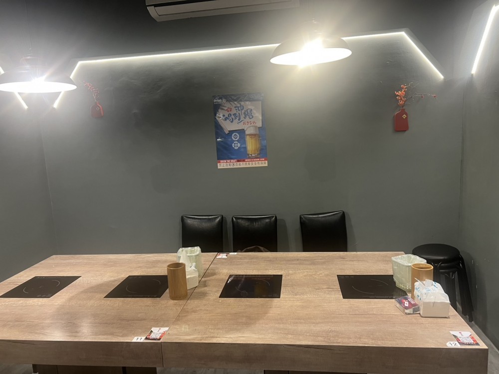 已申請節電,電費跟同期比省下30%,八成新瑞興四門冷藏冷凍櫃,三門150呎冷凍櫃、大噸數中央空調、壁掛式兩台冷氣、8成新電磁爐桌九張以及吧台是電磁爐桌、買斷式POS系統、不鏽鋼切肉機一台、單門冷凍櫃一台