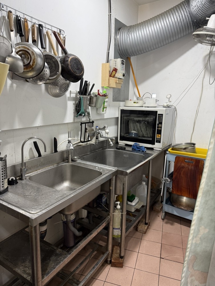 附帶設備: 靜電除油煙機、冰箱*3 、帕尼尼機、蒸烘烤爐、咖啡機、電鍋、電子鍋*2、烤箱、微波爐、保溫鍋、保溫台、燉煮鍋、可生飲淨水設備、煎台、雙口瓦斯爐、電子油炸爐、餐桌椅等、全店生財設備頂讓(現場盤點為準,私人物品除外)