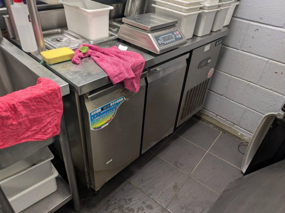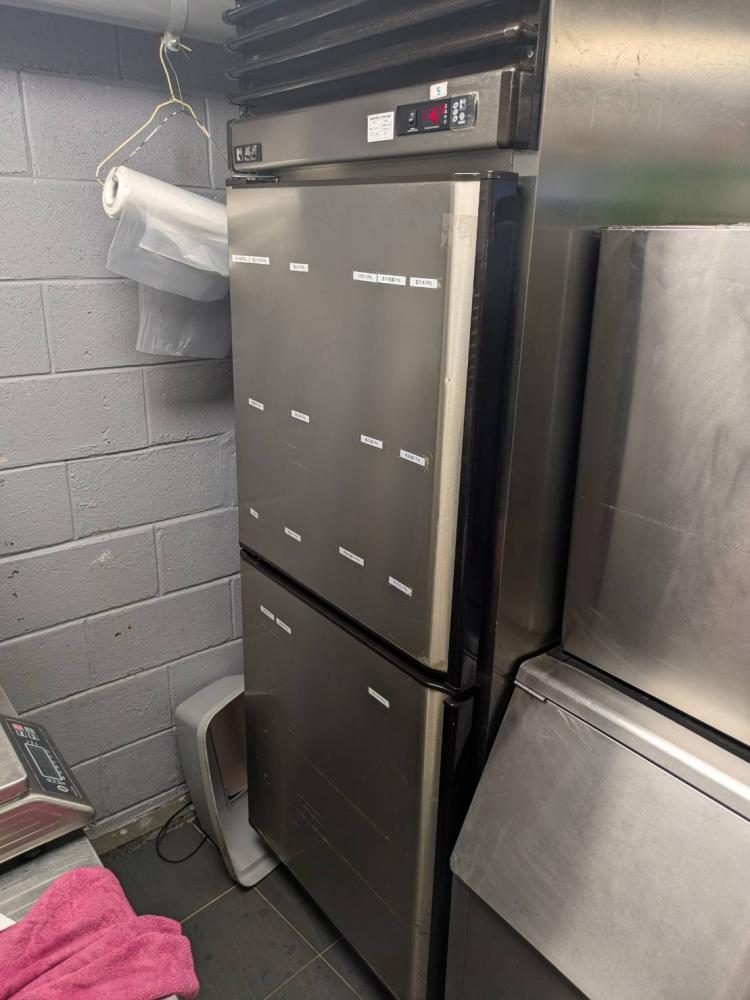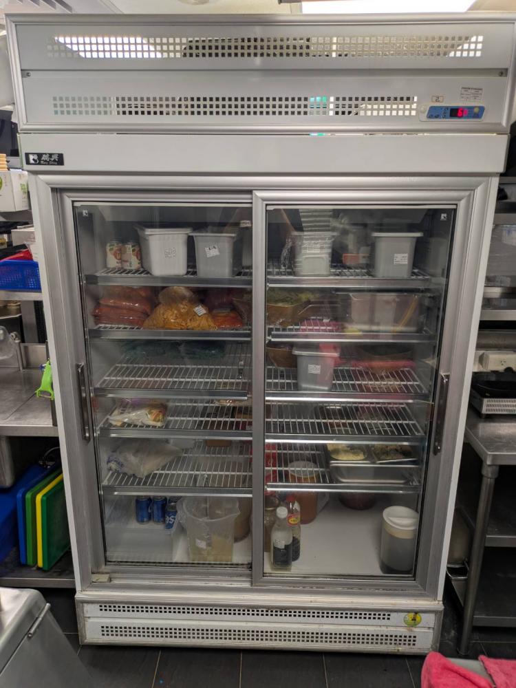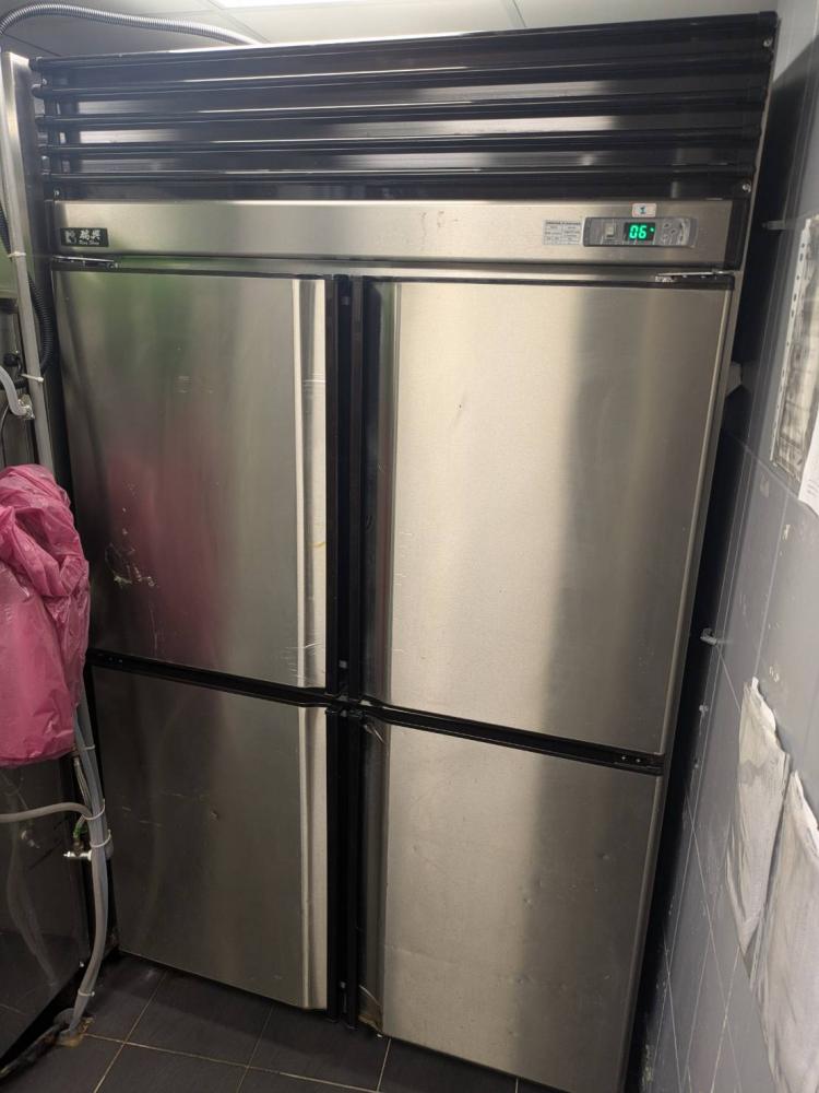 一樓內場:滑軌立櫃冰箱、四門冷藏冰箱、四門冷凍冰箱、四門上凍下冷冰箱、製冰機、刨肉機、排煙機
