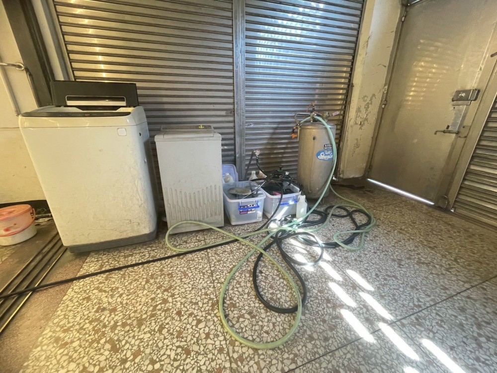 氣壓加壓泵浦x2、泡沫機x1、監視系統x1、監視器x3、氣槍與美容拋光機xN、電腦&螢幕x1、電話x1、高光燈管xN、洗衣機x1、停車格x2、電風扇x3、循環扇x1、冰箱x1、分離式冷氣x1、置物櫃台x1、置物櫃x4、工作桌x1、休息用石桌x2、椅子xN、美容相關材料xN、網路WIFIx1、氣管水管與五金xN。(可提供教學說明與顧問,保證容易上手)。