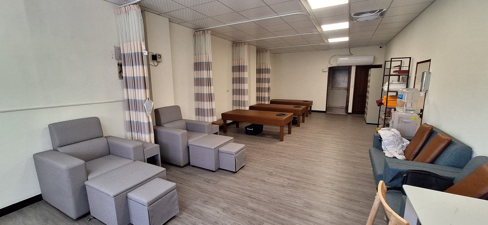附帶設備: 冷氣x1,電熱水器x1,按摩床x4,腳底按摩椅x2,泡腳缸x2,櫃檯x1,接待桌椅X1,餐桌椅x1,置物櫃x1,監視設備x1,天花板,地板,門都是全新裝潢
