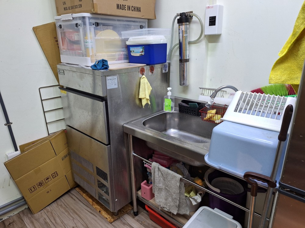 ・金格蛋糕櫃(四層)落地3尺x1、偉至6.5L熱水機x1、臥式冷藏冰箱x2 、製冰機x1、杯封口機x1 、食物封口機x1、烤箱 x1、冰沙機x1、電磁爐x1、小蛋糕櫃*1 、保冰桶12Lx2、保冰箱5Lx1、保冰箱30L