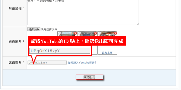 三、到您的廣告物件編輯「店面影片」表單,貼上剛剛的YouTube ID